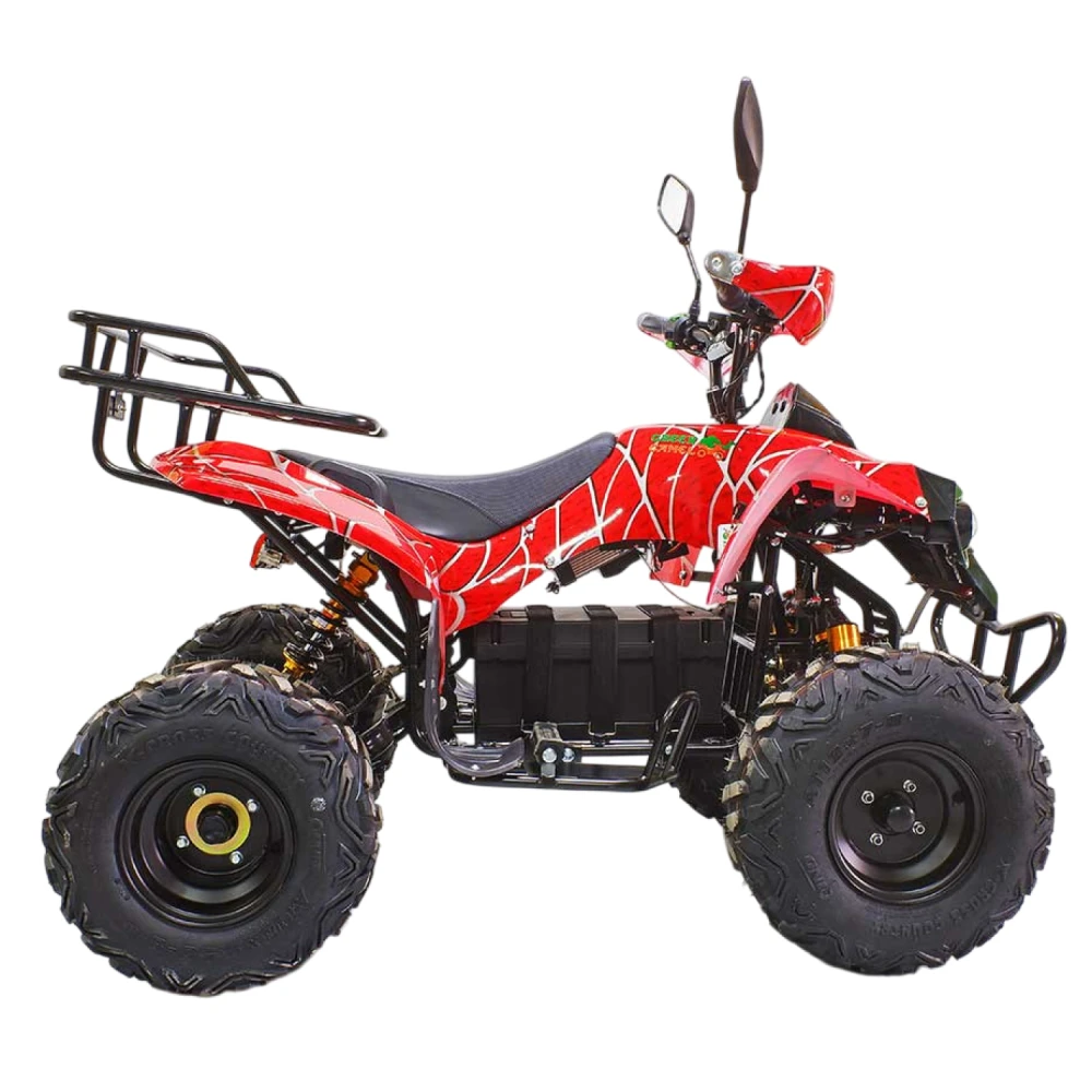Быстрый, надёжный и невероятно стильный – все это про подростковый квадроцикл GreenCamel Atakama T500 Красный паук. Он прекрасно подойдёт для детей возрастом от семи лет. По своим техническим характеристикам он не уступит целому ряду электроскутеров. Он способен развивать скорость в 40 км/ч. На одном заряде преодолеет 40 км (можно приобрести более мощные батареи). Для полной подзарядки вам понадобится восемь часов.