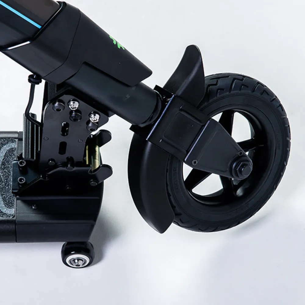 Электросамокат Jetson L9 предназначен для городских асфальтированных дорог, его колеса имеют размер 8 дюймов с эластичными бескамерными шинами. Они не боятся проколов, вам не придётся менять покрышки. Транспорт имеет складную конструкцию, габариты самоката уменьшатся в два раза в сложенном состоянии. Легким нажатием на рычаг рулевая стойка отпускается вниз. Для удобной транспортировки в комплекте предусмотрены дополнительные, транспортировочные колеса. Их можно устанавливать по желанию.