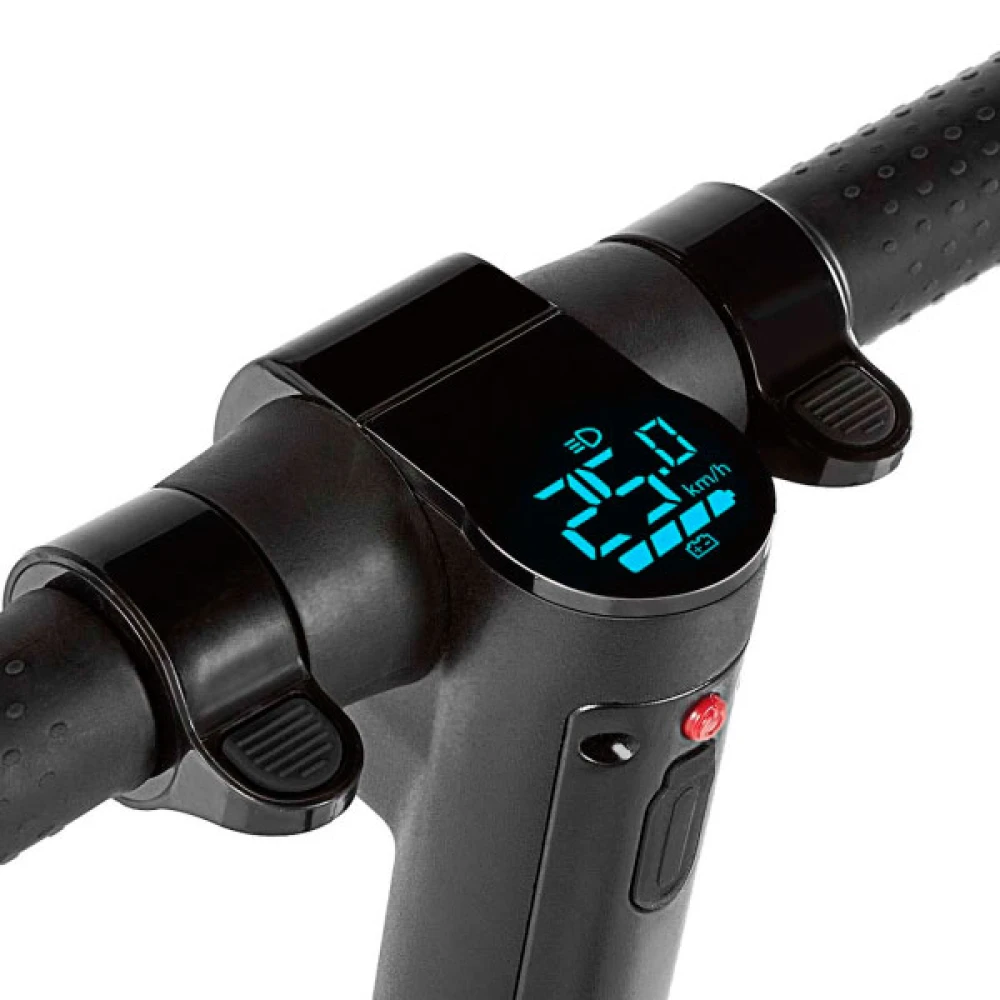 Самокат очень быстро набирает скорость до 25 км/час. Оснащен функцией «Безопасный старт» и при запуске не происходит резкого рывка с мета. Функция автоматического круиз-контроля обеспечит плавную работу и движение электросамоката, не нужно со всей силы давить на ручки управления. Функция двойного торможения делает самокат безопасным, а его работу и движение плавными, удобными.