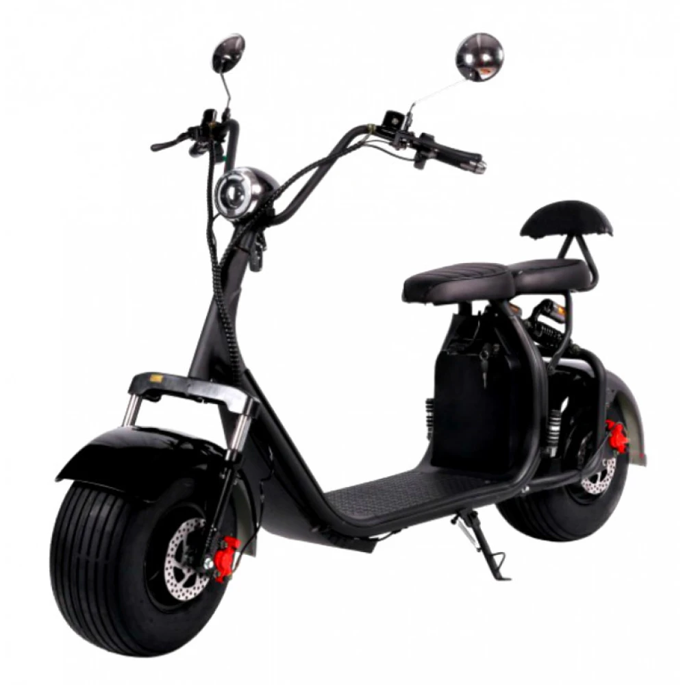 Электроскутер CityCoco Kugoo C2 PRO - усовершенствованный вариант уже полюбившейся и хорошо зарекомендовавшей себя модели. В данной модификации производители предусмотрели более мощный двигатель и аккумулятор. Теперь электроскутер быстро и плавно разгоняется до 45 км/час, легко преодолевает препятствия и подъемы. Одного заряда батареи хватает для преодоления 45-ти километров пути. Этого вполне достаточно для поездок в течение всего дня. Главным преимуществом данной модели является дополнительное сидение для пассажира. Улучшенная амортизация и усиленная подвеска позволяют пользоваться электроскутером вдвоем, что значительно расширяет область его применения. Благодаря широким 8-ми дюймовым колесам, ездить на электроскутере возможно не только по ровным городским улицам, но и по бездорожью. Данная модель оснащена качественной системой освещения. Яркая передняя фара, задние габаритные огни и поворотники повышают безопасность движения в темное время суток и предупреждают других участников движения о совершаемых маневрах. Надежные гидравлические тормоза чутко реагируют на команду райдера и гарантируют быструю остановку электроскутера Kugoo C2 PRO в экстренной ситуации.