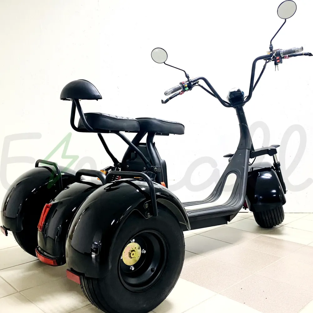 GT-X7 PRO трехколесный – байк 2021 года выпуска. Продвинутый двухместный вариант современного транспортного средства с мотором мощностью 2000 Вт. Оснащен дополнительным местом для пассажира, надежной гидравлической тормозной системой, противоугонной сигнализацией и другим функционалом. Трехколесный электробайк выглядит современно, брутально, выделяется на фоне другого транспорта.