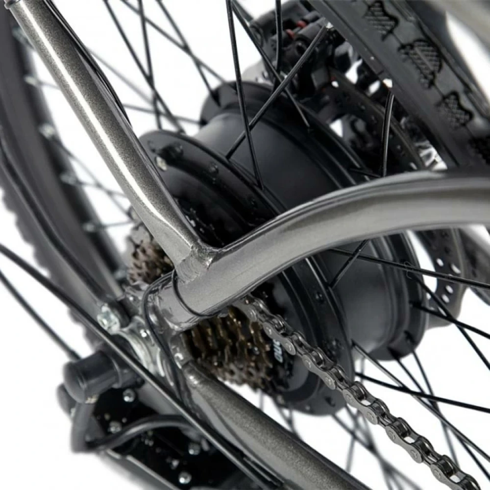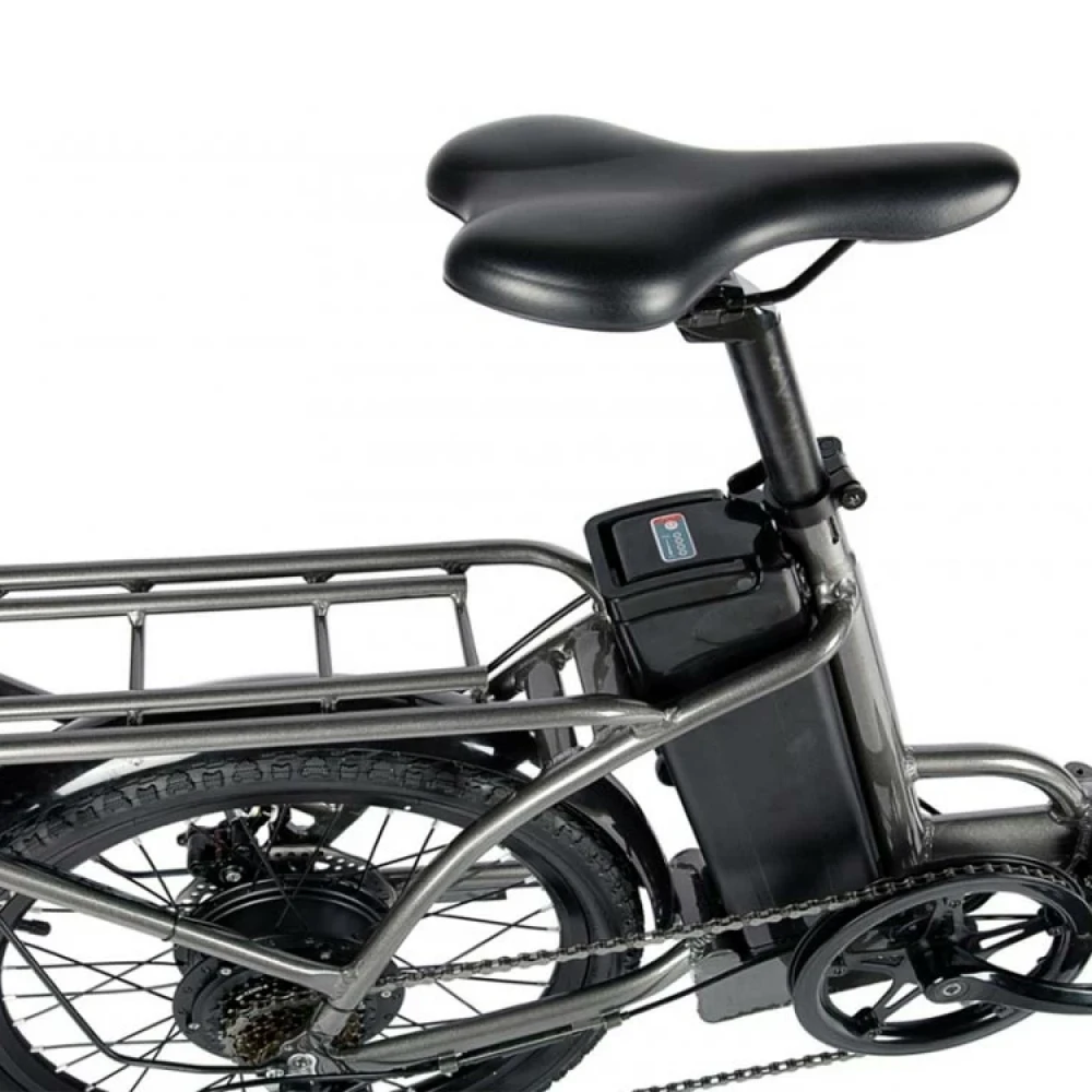 Алюминиевая конструкция рамы – складная, рассчитана на максимальную грузоподъемность до 110 кг. Благодаря современной системе трансформации техника в течение пары минут достигает минималистичных размеров. С такими характеристиками модель удобная как в путешествии, так и при хранении. При мощности электродвигателя 350 Вт и максимальном разгоне скорость составляет 30 км/час, а заявленный производителем запас хода – 60 км. Увеличить пробег можно посредством чередования электрического режима с педальным. Батарея размещена в недоступном защищенном месте за седлом, не мешает во время езды, быстро снимается и быстро заряжается (в течение 6 часов). Удобное регулируемое седло снижает нагрузку на спину, не вызывает усталости. Наличие подножки не вызывает проблем с парковкой. Контроль скоростных параметров и заряда батареи обеспечен информационным дисплеем. Для оформления заказа предлагаем сделать телефонный звонок нашему специалисту.
