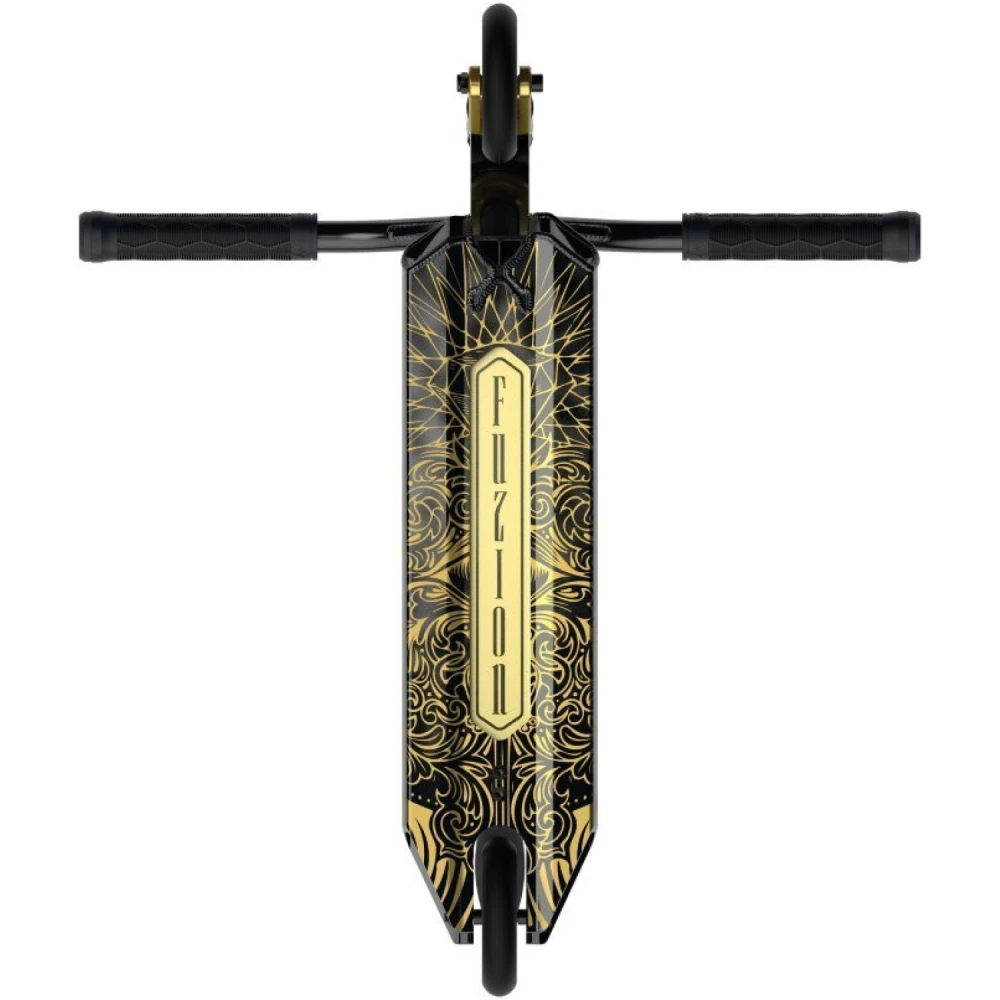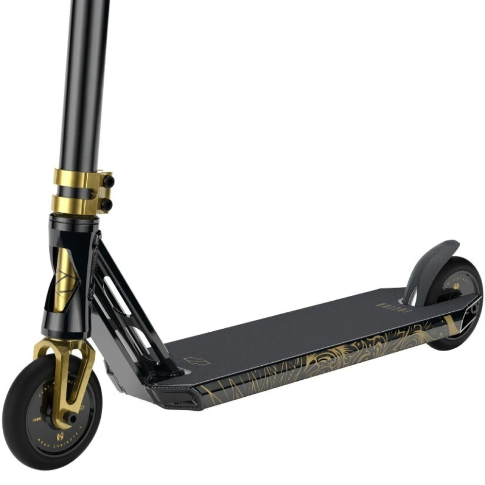 Трюковой самокат Fuzion Z-Series Z350 2022 Prophecy черно-золотой – выглядит презентабельно, считается лучшим подарком райдеру-экстремалу. Модель занимает лидирующие позиции в ТОПе продаж этого сезона. Востребована российскими трюкачами и ездоками из СНГ.