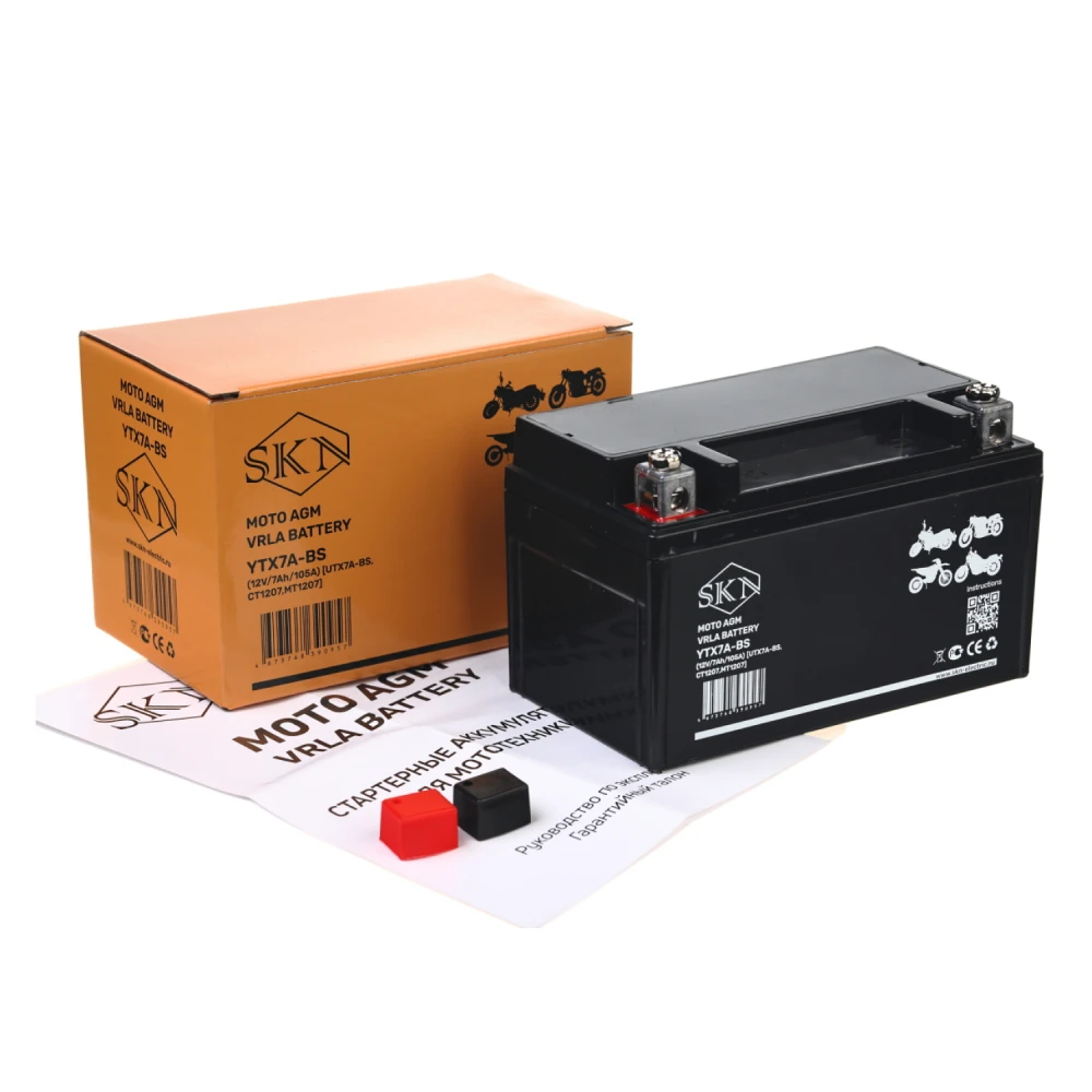 Аккумулятор стартерный для мототехники SKN YTX7A-BS [12V/7Ah/105A) (UTX7A-BS, CT 1207, MT 1207]