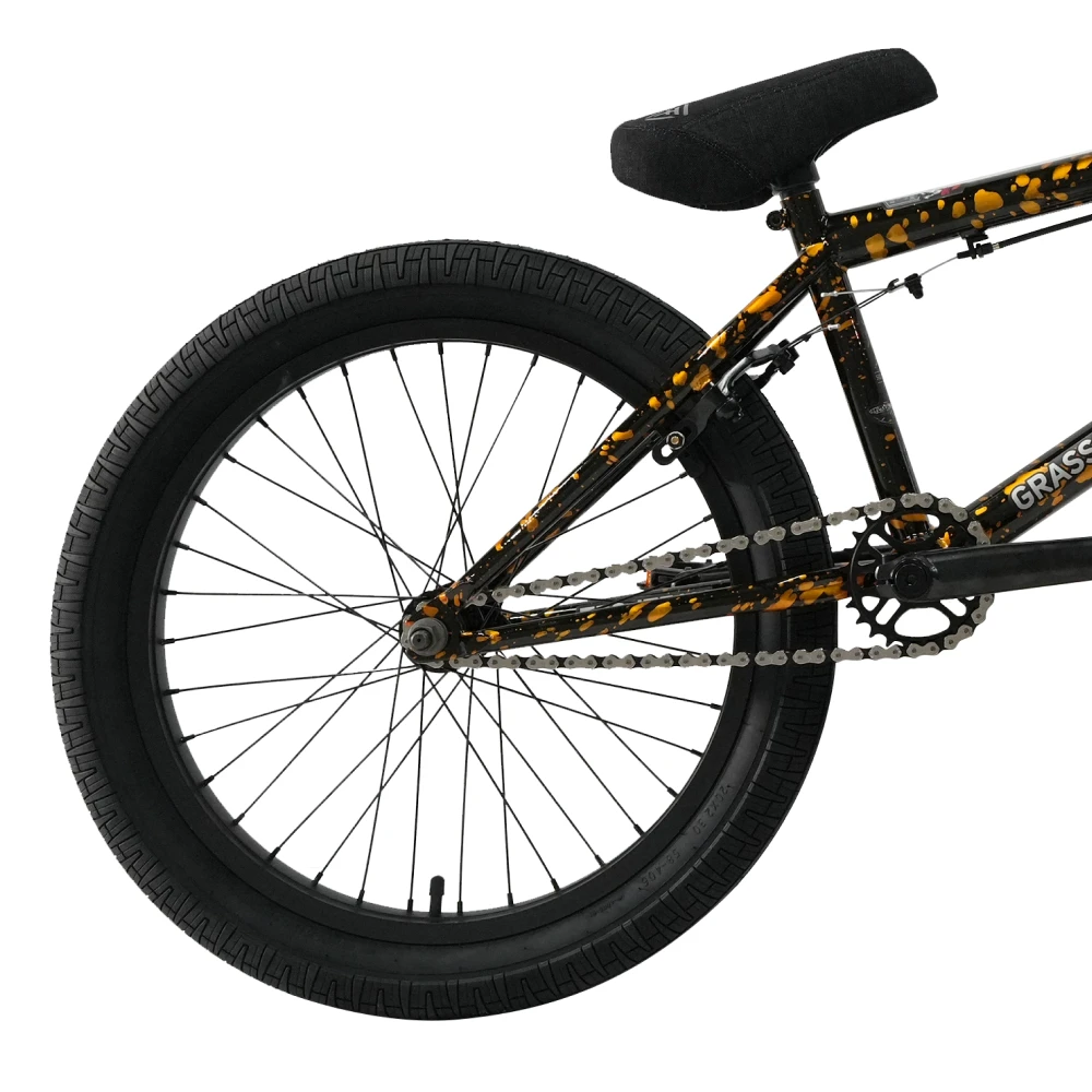 Каретка рулева на промышленных подшипниках гарантирует долговечность и надежность, а обновленные дропауты 14мм обеспечивают прочное крепление колес, что особенно важно при выполнении сложных трюков. Кроме того, съемные крепления тормоза и направляющего троса делают этот велосипед удобным и легким в обслуживании. Оранжево-черный дизайн придает ему стильный и современный вид, делая его привлекательным для всех, кто ценит не только функциональность, но и внешний вид своего велосипеда.