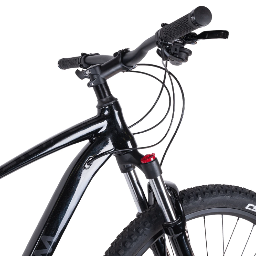 ВЕЛОСИПЕД TT LAVINA 27.5 черный – обновленная модель с алюминиевой хардтейл рамой. Минималистический стиль техники подкупает и влюбляет в себя одновременно. Велосипед оснащен амортизационной вилкой с механической блокировкой для поездок в стиле кросс-кантри по пересеченной местности и по любому типу склонов. Правильный угол наклона снимает нагрузку с позвоночника, что делает длительные заезды еще более комфортными. Конструкция велосипеда имеет незаметные сварные швы. Тормозная система представлена комбинацией дисковых гидравлических тормозов с ротором, которые обеспечивают быструю остановку и имеют хорошую чувствительность. Картриджная каретка на промышленных подшипниках позволяет свободно вращать алюминиевые педали, не вызывая затруднений и дискомфорта.